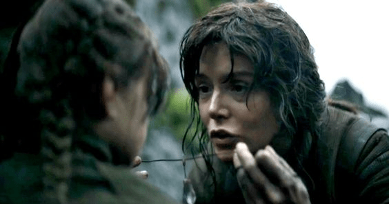 “So this is how liberty dies.” Her hairpiece is similar to the Rebellion/Resistance symbol.